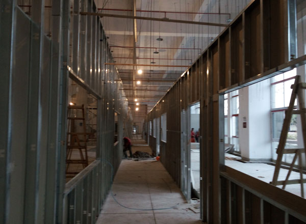 重慶華發裝修公司為重慶SGS通標標準技術股份有限公司提供的服務包括辦公室裝修工程(裝飾部分)以及廠房室內裝飾消防整改工程(安裝工程)。在裝修隔墻以及門窗工程時,經過重慶華發裝修的設計師同重慶SGS通標標準技術服務有限公司的負責人溝通,采用了75型輕鋼龍骨防煙隔墻。輕鋼龍骨是一種新型的建筑材料,隨著我國現代化建設的發展,近年來已廣泛應用于賓館、候機樓、客運站、車站、劇場、商場、工廠、辦公樓、舊建筑建筑改造、室內裝修設置、頂棚等場所。