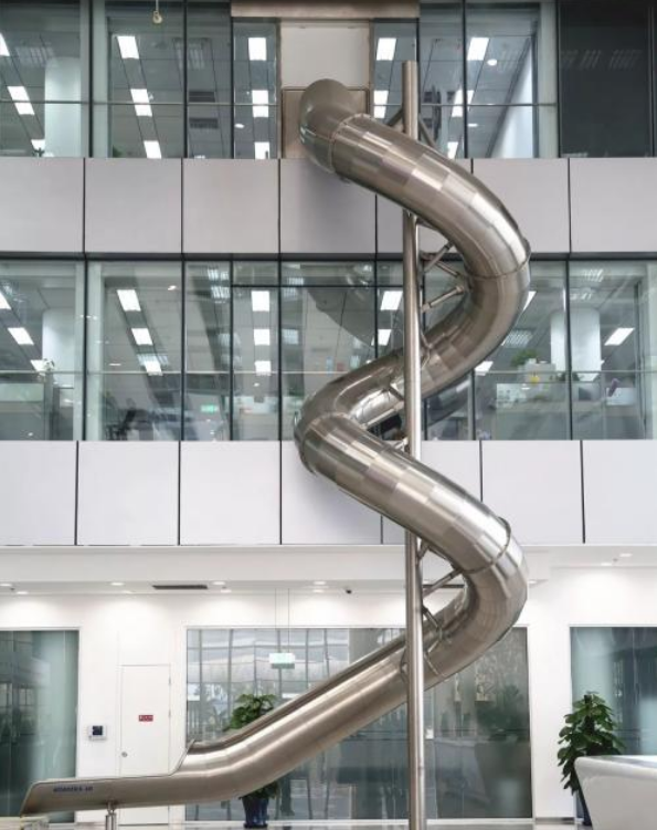 國內也有裝上滑梯的樓,它就是百度科技園,位于中關村軟件園二期內,滑梯從三樓到一樓,目測長度有二十多米,下班不用坐電梯,這個設計堪比坐電梯,一溜煙就下來了,太歡樂了,整天的工作煩惱頓時都忘掉了。
