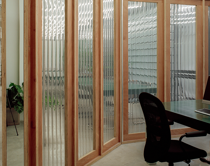 該項目中唯一的私人辦公室只是用PC波板隔開,這樣既允許必要的隱私,又能保持透明度的概念。