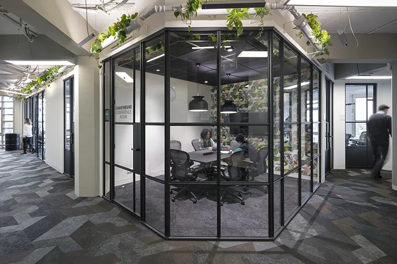 在荷蘭鹿特丹自己的設(shè)計團(tuán)隊(duì)合作設(shè)計的設(shè)計中,100多個新辦公室裝修,會議室和環(huán)境中有一個全新的城市叢林外觀和感覺,辦公室裝修注重健康,可持續(xù)性和創(chuàng)新。辦公室裝修中許多色彩繽紛的會議室,秘密房間和辦公空間的多樣性使這一點(diǎn)得到了強(qiáng)調(diào)。