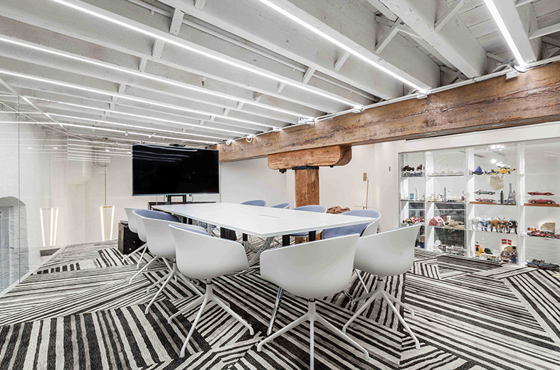 游客看到的第一個(gè)辦公室裝修設(shè)計(jì)特點(diǎn)是入口區(qū)域故意變暗。全黑的空間帶來一種“距離感”,可以調(diào)解街道和辦公室。然而,隨著電子推拉門逐漸打開,迎接客人的將是一個(gè)明亮而開放的辦公室裝修設(shè)計(jì),層高4.5米。暴露在外的百年前的木結(jié)構(gòu)和保留在空間中的木地板,讓游客能夠感覺到強(qiáng)烈的歷史感。