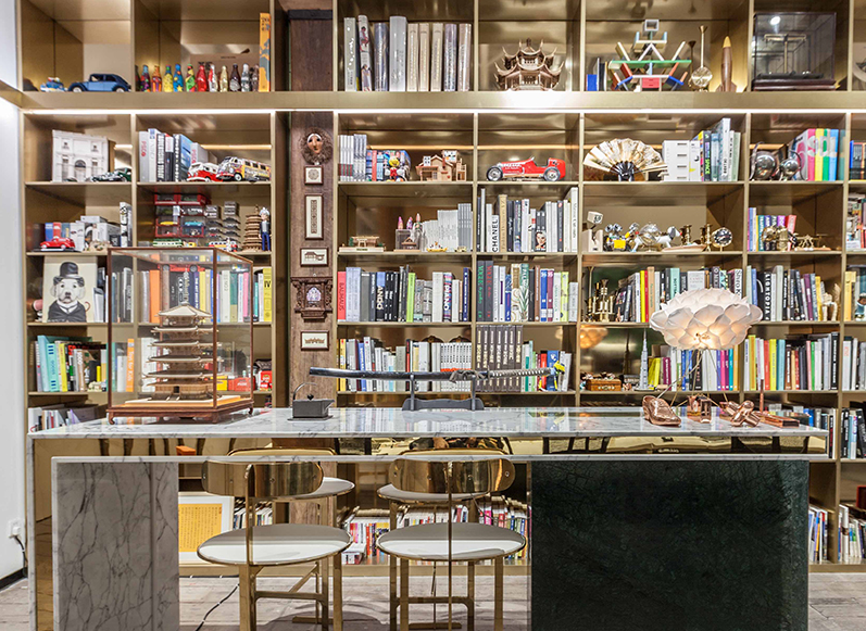 黃金書架是辦公室裝修空間的亮點(diǎn),你進(jìn)入空間后一定會(huì)注意到。它的設(shè)計(jì)理念來源于中國的俗語“書中自有黃金屋”。它展示了來自世界各地的書籍,涉及設(shè)計(jì)和藝術(shù)、古董、玩具、作品以及工作室創(chuàng)始人從50多個(gè)國家收集的樂高模型。